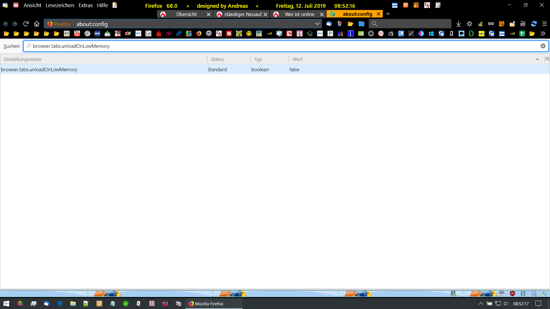 Falldarstellung: Ich arbeite mit mehreren Tabs auf unterschiedlichen Seiten. Wenn ich durch Anklicken eines Tabs auf eine Seite wechsele, mit der ich einige Minuten nicht zugange war, baut Firefox die Seite erst neu auf.