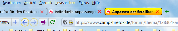 • Man muss auch mal die Motivation sehen, die Skript-Entwickler und Entwickler von CSS-Code am Anfang hatten. Der Skript-Entwickler vermisste eine oder mehrere Funktionen, die Firefox nicht hat, dem Entwickler von CSS-Code gefiel dies oder jenes Aussehen nicht und beide haben es dann zwar in erster Linie für sich entwickelt und dann aber auch der Allgemeinheit zur Verfügung gestellt. Wenn ich mich z. B. recht daran erinnere, gab es bei Einführung von Australis vor Jahren Riesengeschrei wegen der neuen runden Tabecken, alle wollten weiterhin die eckigen Ecken :) behalten. Das war Ausgangspunkt zur Schaffung der Erweiterung CTR durch Aris. Seit Quantum habe ich schon ab und zu mal gelesen, dass da die Leute unbedingt runde Tabecken haben wollen. So kann es gehen.