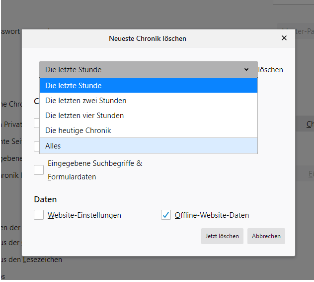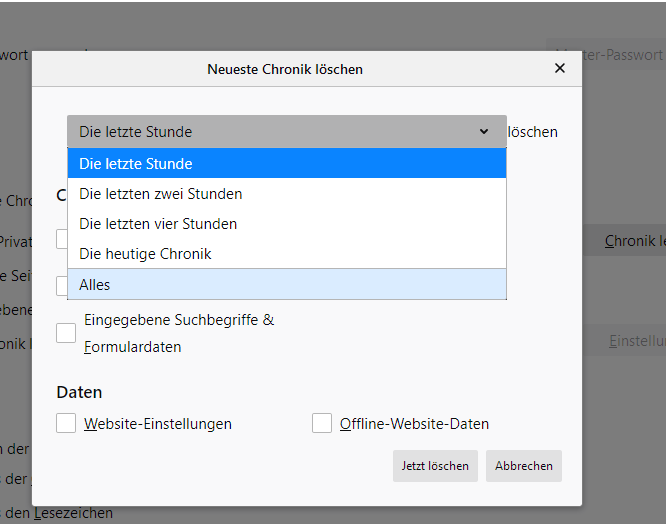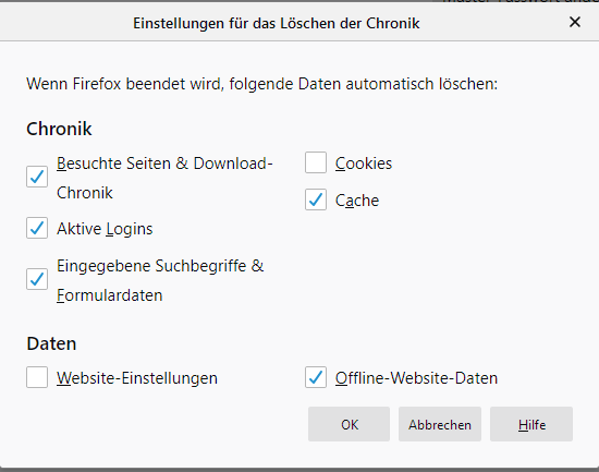 wenn ich nur ein Häkchen bei Cache mache, wird mir die Option " Wenn Firefox beendet wird, folgende Daten automatisch löschen" nicht angezeigt.