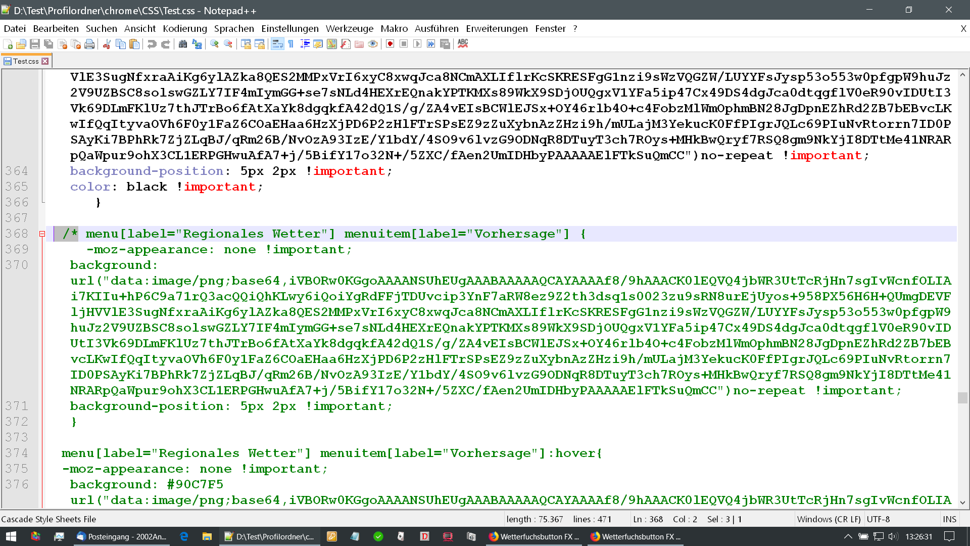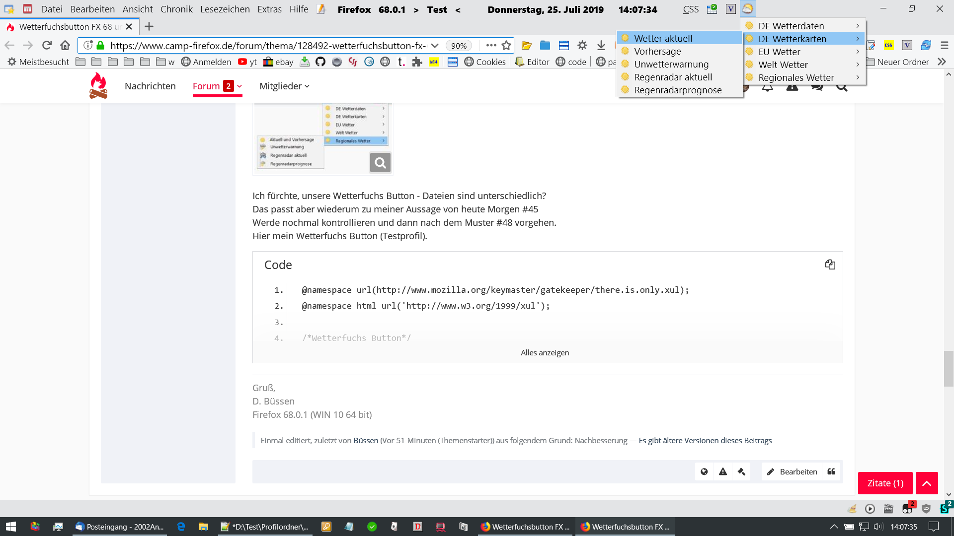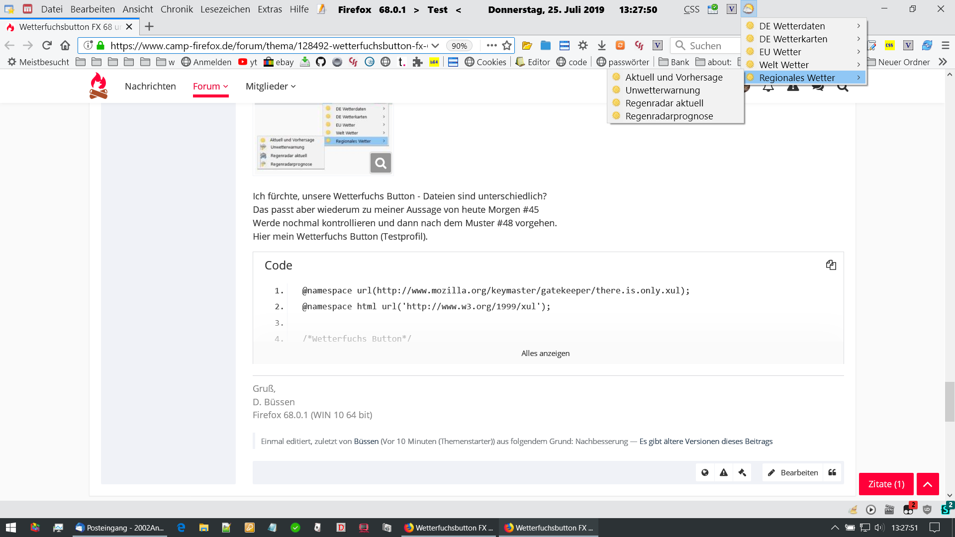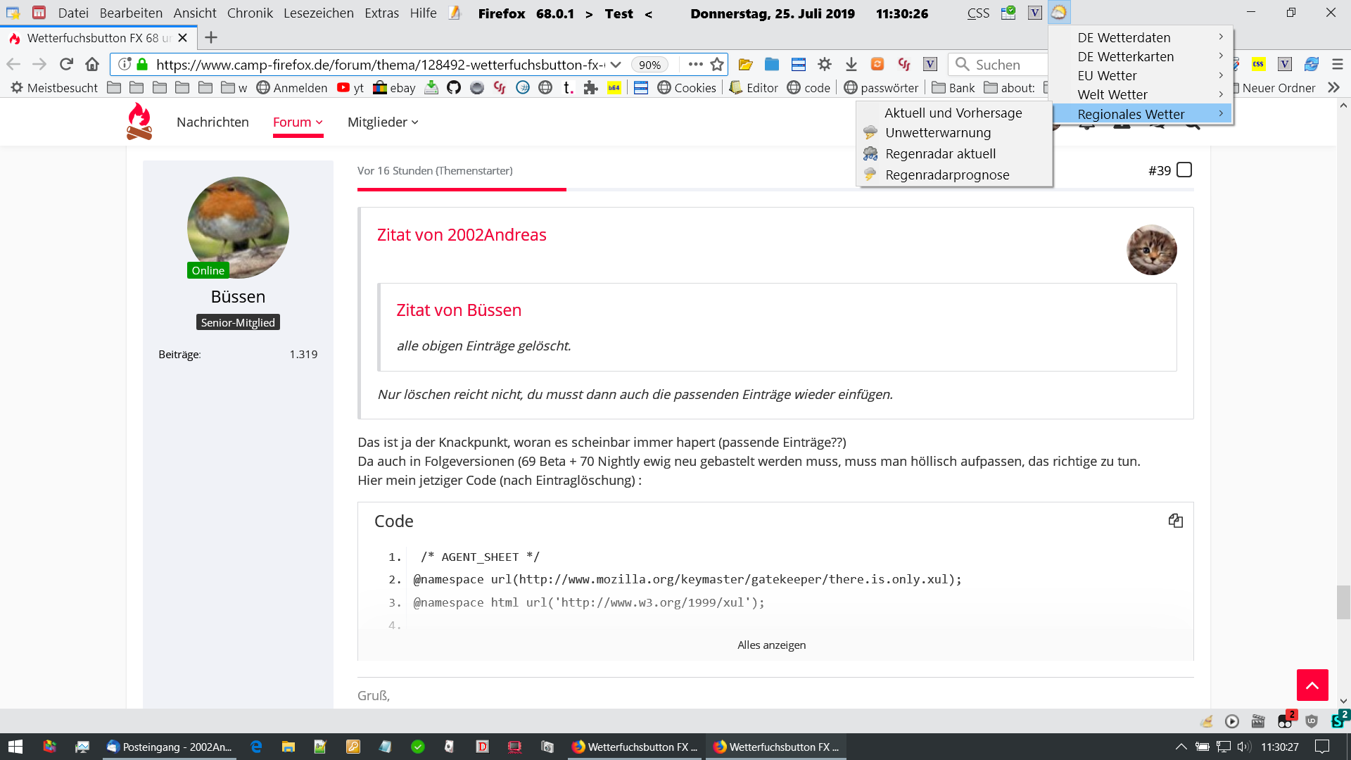 url("chrome://global/content/bindings/menu.xml#menu-iconic") !important;list-style-image:Das ist nicht der Code mit dem du schon Icons eingefügt hast.Es kann doch nicht so schwierig sein mir den richtigen Code zu geben.Und vergiss das mit Nightly, da funktioniert der Wetterfuchs zur Zeit eh nicht.