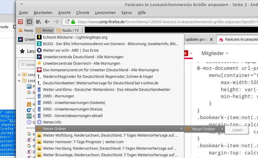 /* Lesezeichen Popup Ordner Zeilenabstand kleiner, Popup-Breite größer */