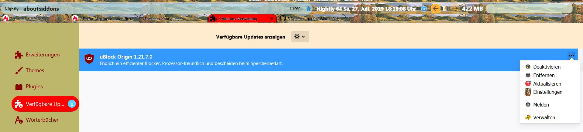 ich installiere Updates von Erweiterungen manuell. Ich lasse die Updates also nicht automatisch installieren.