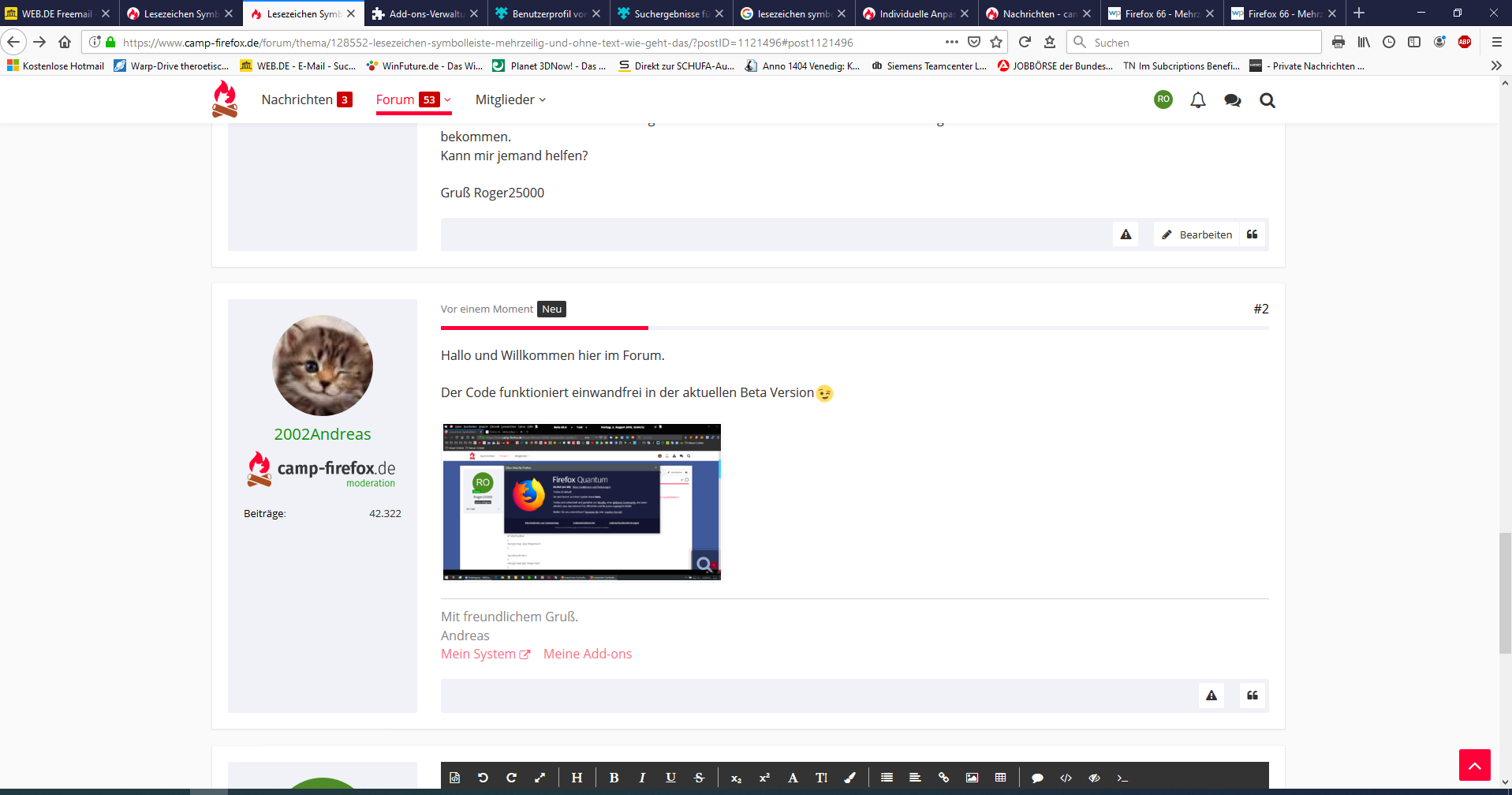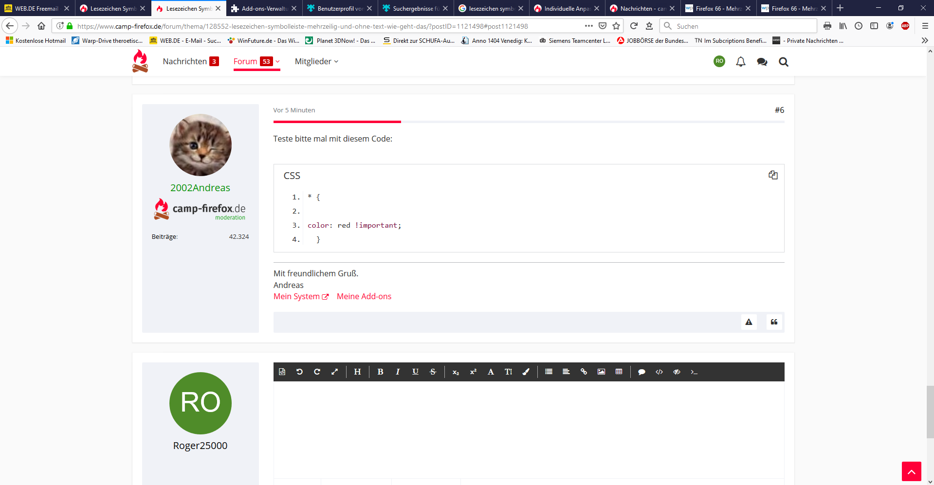 Dazu benutze ich eine userchrome.css mit dem folgenden Code, den ich von der Seite (https://www.windowspower.de/firefox-66-meh…lleiste-update/) habe.