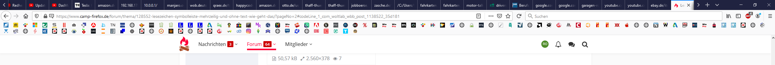 Lesezeichen Symbolleiste mehrzeilig und ohne Text - Wie geht das?