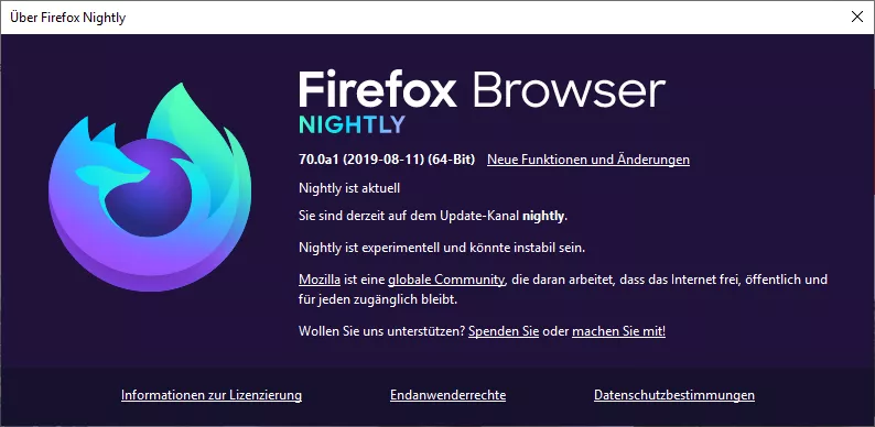 Jap, das Branding für Stable und Developer Edition wurde ebenfalls geändert. Das betrifft übrigens nicht nur das Logo sowie die Schrift, sondern auch den Produktnamen. Es heißt also nicht länger Firefox Quantum, sondern ab sofort Firefox Browser.
