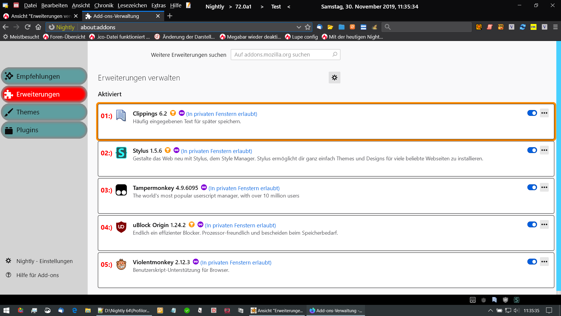 Nein, er hat geschrieben, dass es eine Änderung von Fx 71 zu Fx 72 gegeben hat. Aber du hast ja schon Fx 72 seit ein paar Wochen, also sicher auch den Add-on-Manager-Code für Fx 72. Und es ist unwahrscheinlich, dass es da eine Änderung gegeben hat, nur weil Fx 72 jetzt beta statt Nightly ist. Richtig neue Änderungen kommen erst jetzt wieder, wo Fx 73 Nightly ist.
