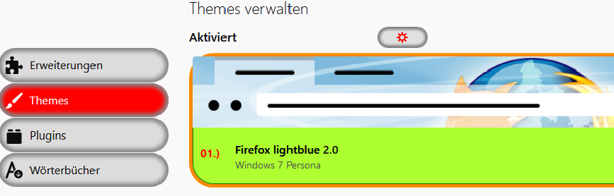 Bei Themes rechts unten, und unter Erweiterungen, der kleine blaue. Und weil du das hier ansprichst, der Deaktivieren/Aktivieren-Button bei Themes (siehe Bild aus #327) gefällt mir so auch nicht, aber ich habe mich schon garnicht mehr getraut das anzusprechen, weil ich in der Hauptphase der Bastelei schon genügend Wünsche erfüllt bekommen habe. Hast du noch eine Idee, wie der Button den anderen angepasst werden kann ?