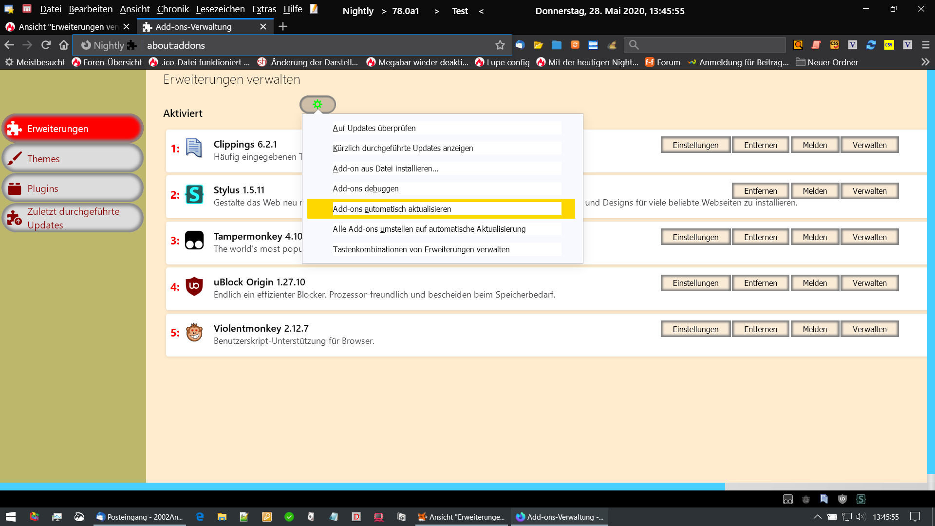 Siehe hier bei Edit: RE: Ansicht "Erweiterungen verwalten"