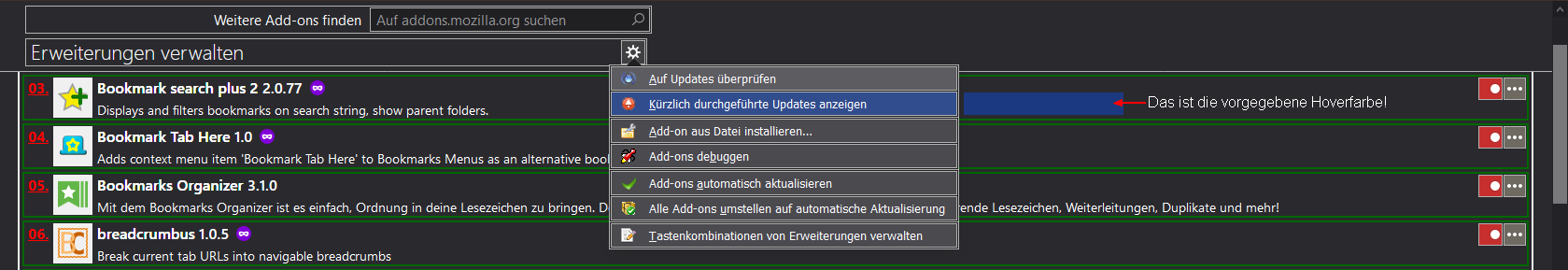 Nun habe ich mich notgedrungen für eine andere Lösung entschieden, bei grün Updates automatisch, ansonsten Farben insgesamt darauf abgestimmt. Damit kann ich gut leben. Nochmals danke!![]()