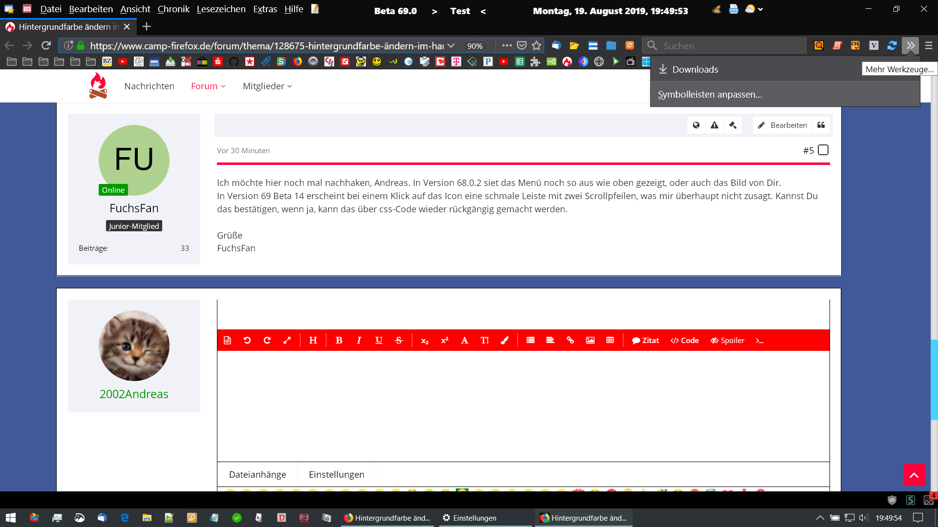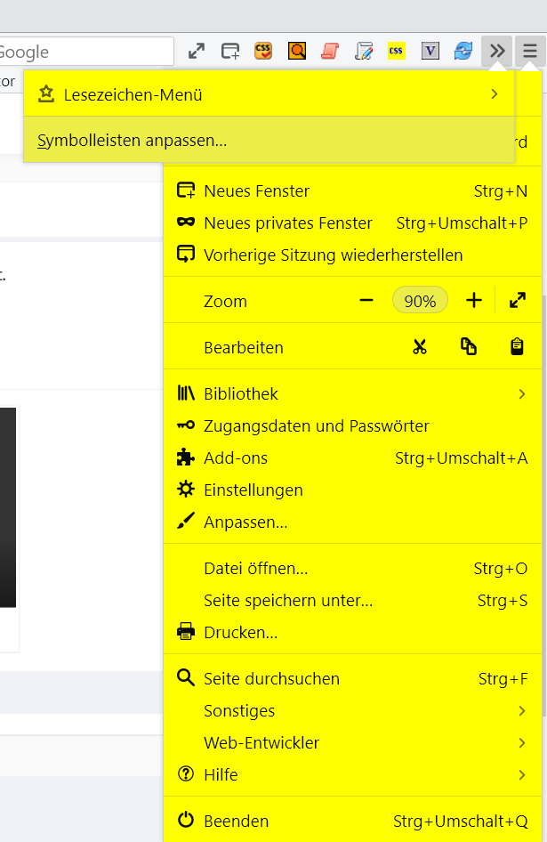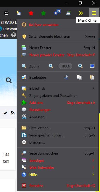 • Ich möchte hier noch mal nachhaken, Andreas. In Version 68.0.2 siet das Menü noch so aus wie oben gezeigt, oder auch das Bild von Dir.