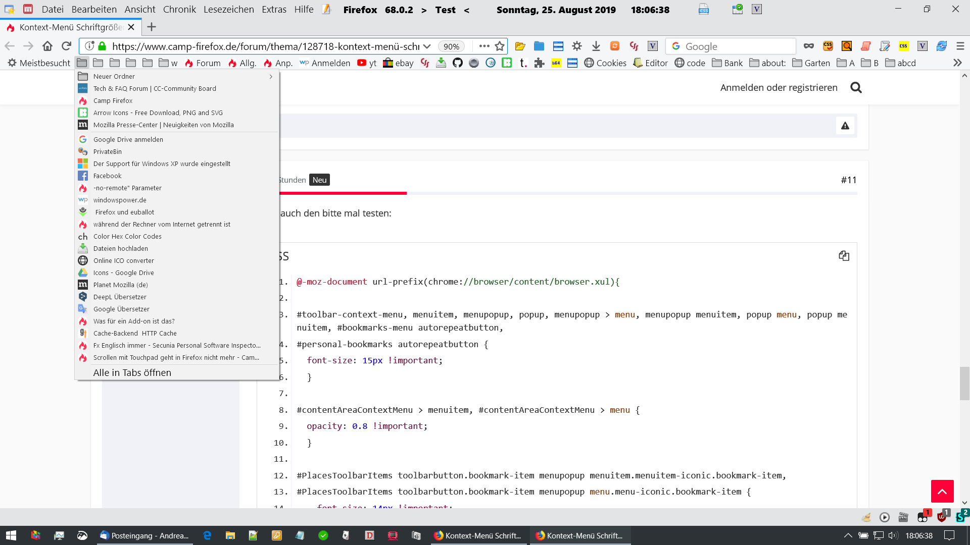 Bei 2002Andreas wird alles auf 15px angezeigt, wie es gestern Abend beim Test war; die Kontextmenüs und auch das Aufklappmenü der Lesezeichen.
