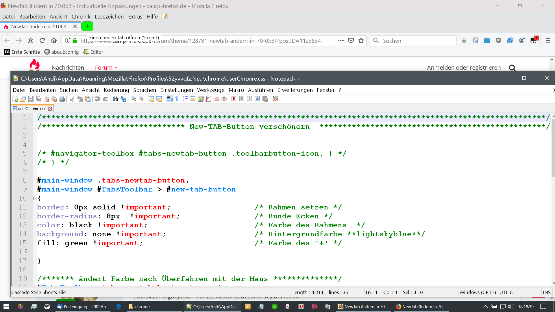 • Warum ziehst du den Button nicht einfach mit Anpassen weg, wenn du es eigentlich nicht brauchst? Neue Tabs lassen sich auch mit Strg+T anlegen