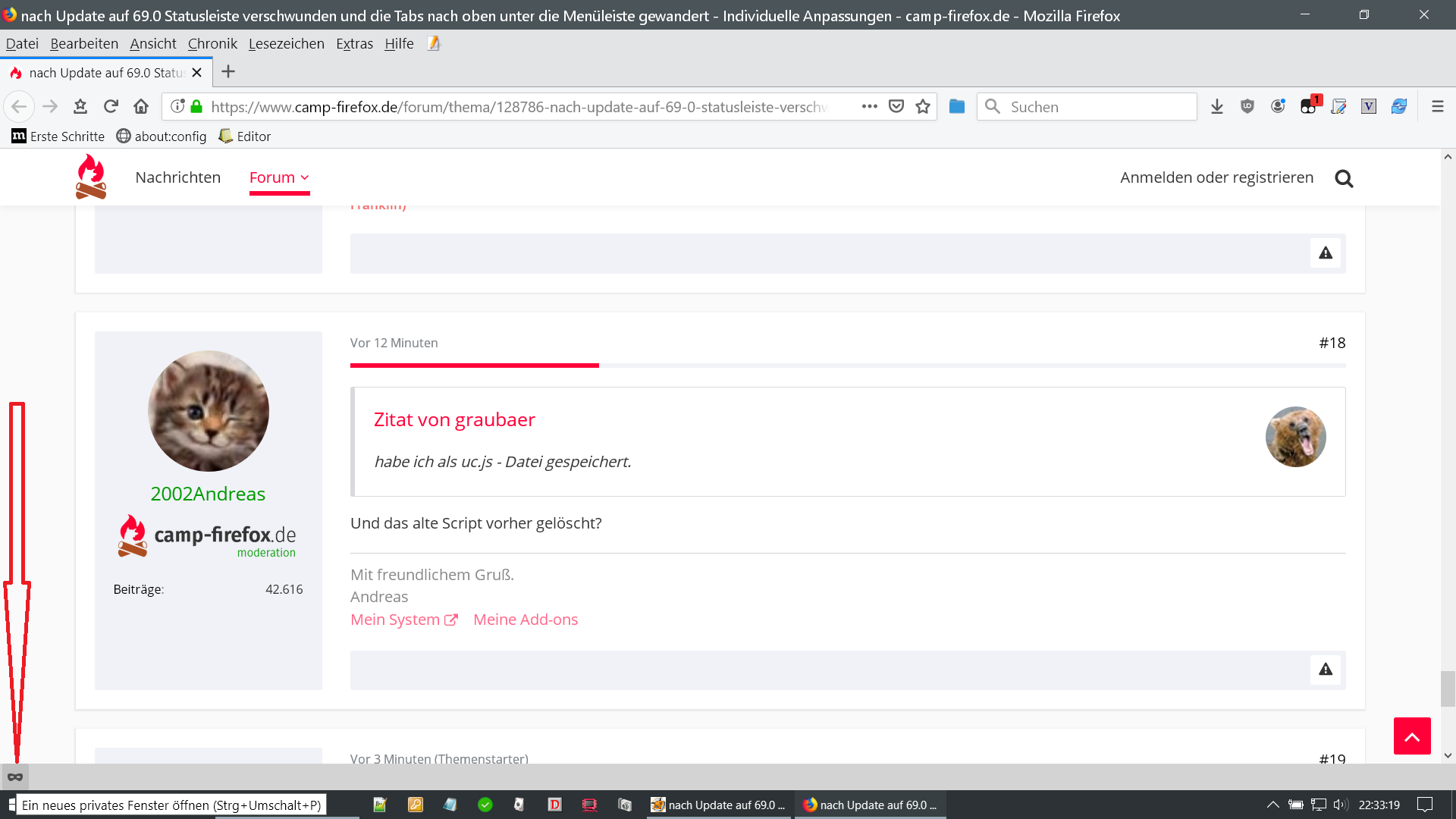 nach Update auf 69.0 Statusleiste verschwunden und die Tabs nach oben unter die Menüleiste gewandert