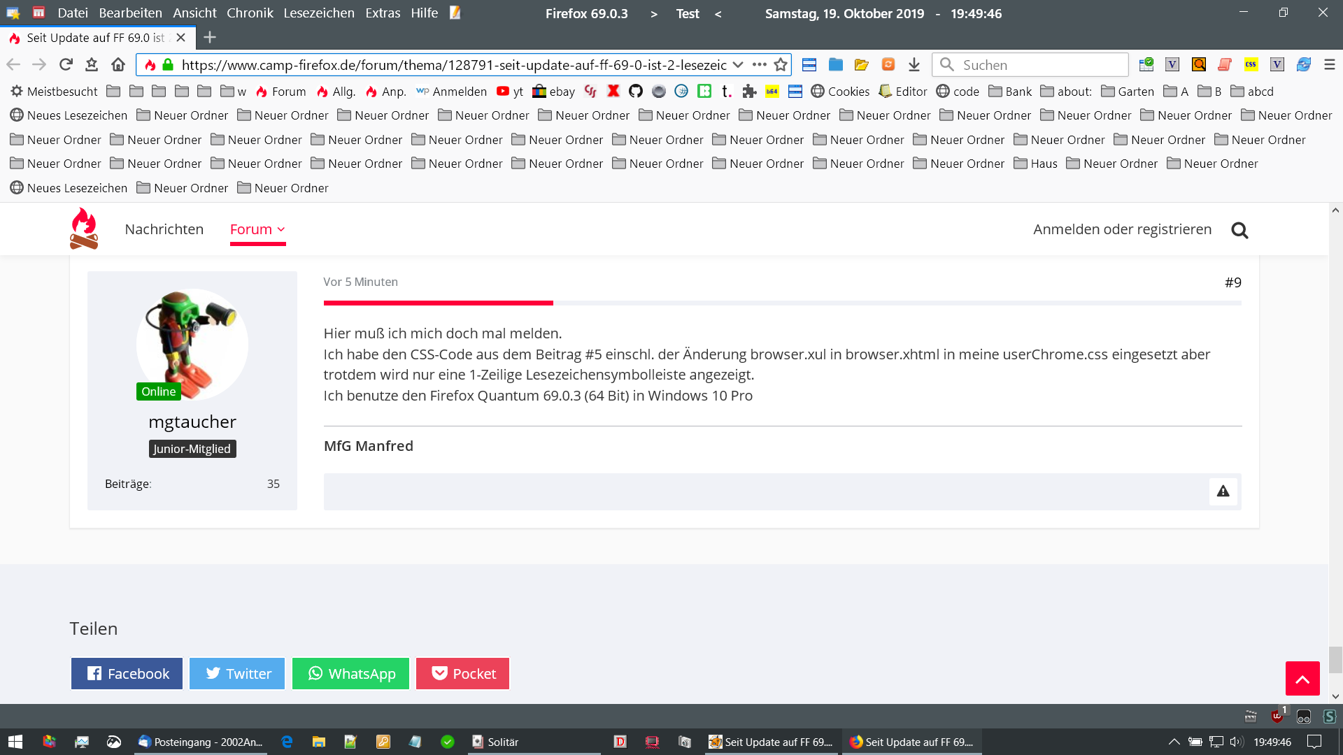 Bis zum Update auf die 69.0 (Alt 68.0.2 und vorherige) hatte ich eine 2. Lesezeichensymbolleiste. Die ist nun nach dem Update zugunsten