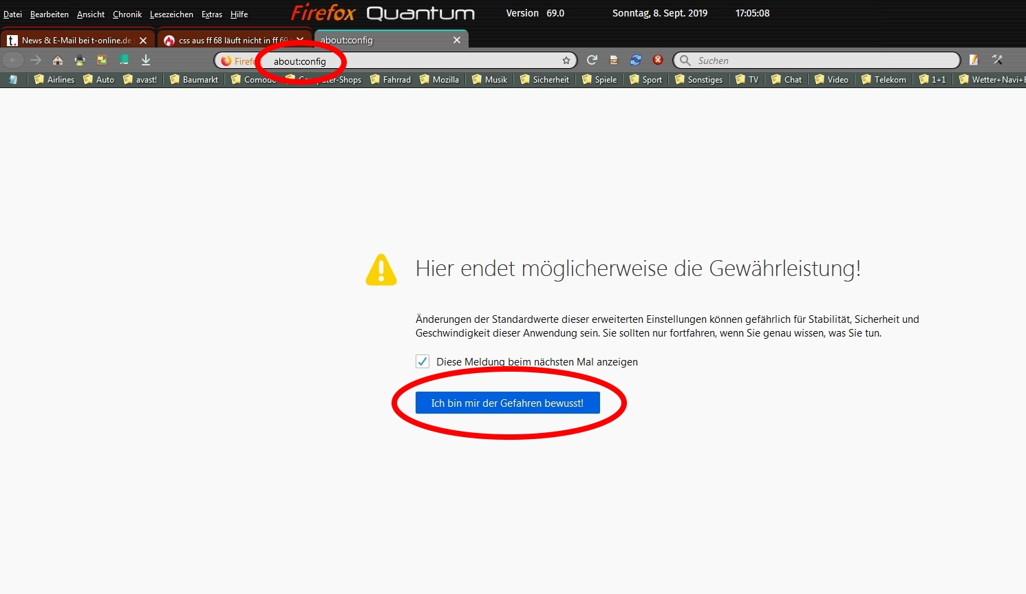 wenn ich about:config eingebe erscheint der zu suchende Eintrag überhaut nicht.