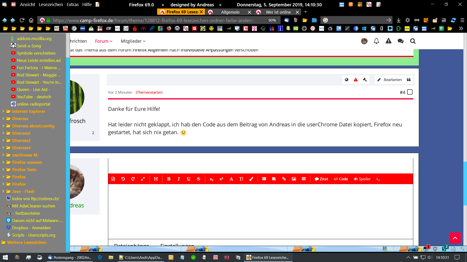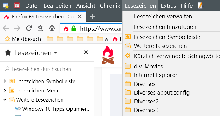 Firefox 69 Lesezeichen Ordner Farbe ändern von grau auf orange