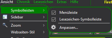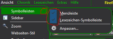 Der kleine Pfeil neben "Symbolleiste" soll weiß werden (auch alle anderen gleichartigen Pfeile in anderen Menüs)