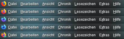 Habe zwar keinen Bedarf an Menu-Separatoren, aber mittels der Beispielcodes habe ich mir jetzt für meine FF-Installationen das Programm-Icon zwecks besserer Unterscheidung in die Menuleiste eingefügt (macht natürlich nur Sinn bei abgeschalteter Titelleiste ). Falls jemand Interesse daran hat, stelle ich es einfach mal hier rein....