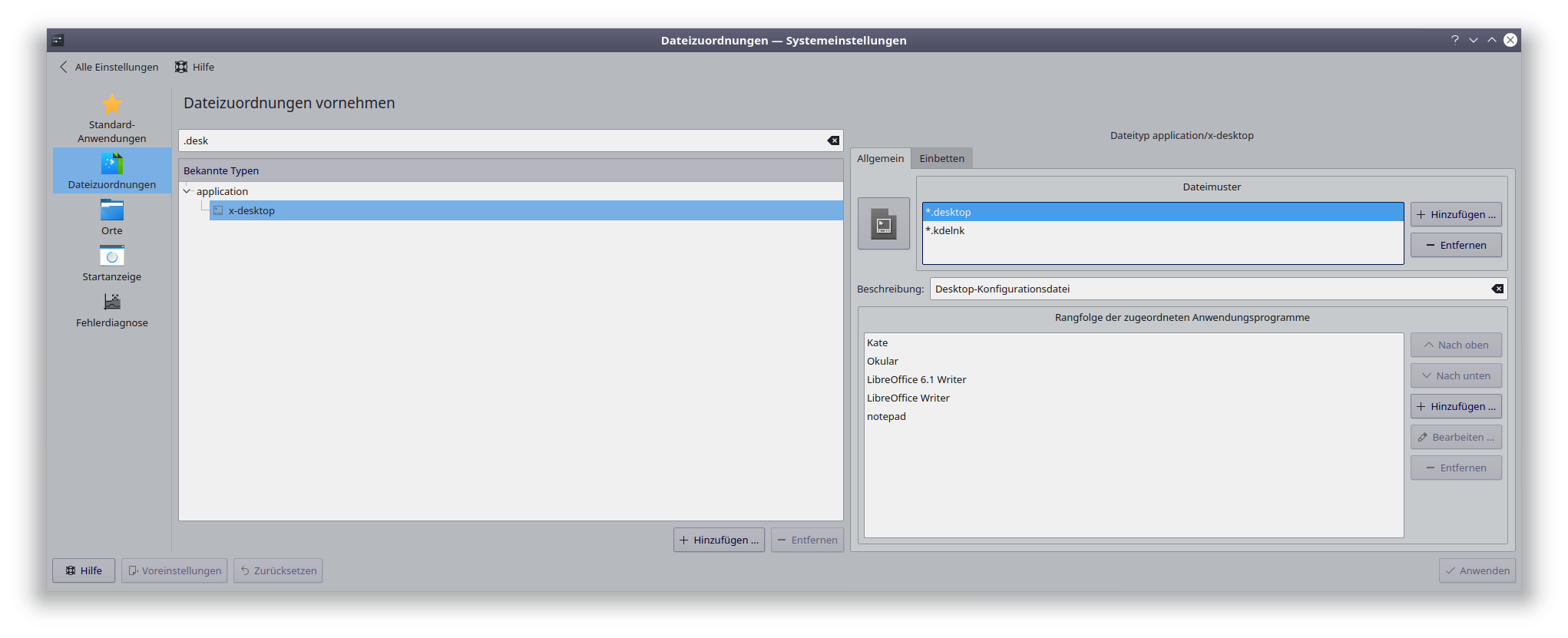 • Zunächst müssen die Dateizuordnungen in Linux richtig gesetzt sein und dann können auch die Zuordnungen in Firefox konfiguriert werden.
