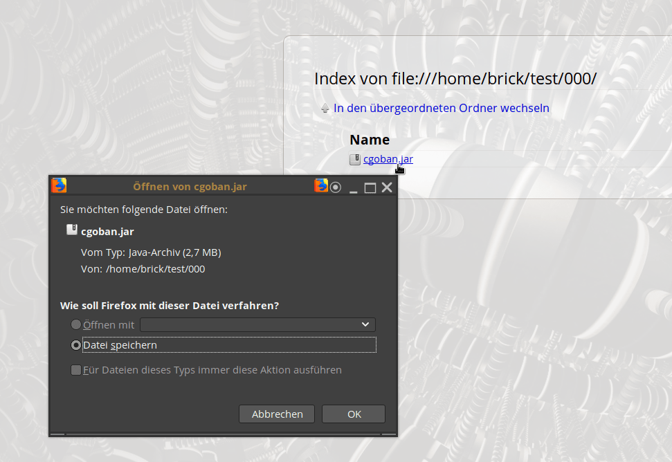 Dadurch habe ich dann auch im Firefox die Auswahlmöglichkeit beim Anklicken einer beliebigen .jar-Datei: