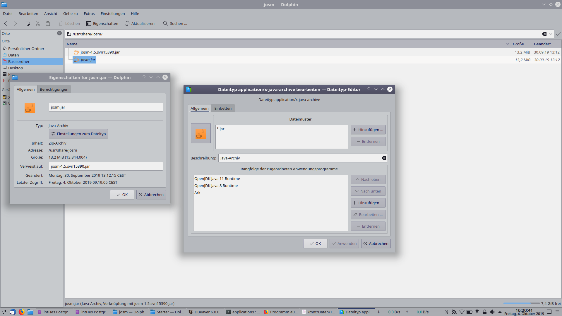 Der Editor JOSM wird gestartet. Dies entsprechend unter LINUX (kUBUNTU 18.04) mit