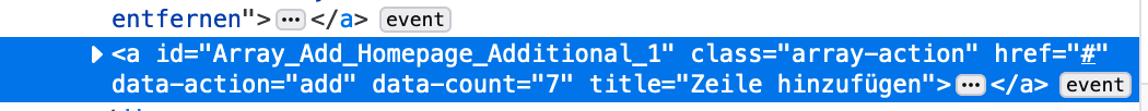 Die Entwicklertools zeigen den aktuellen Status eines DOM-Elements. Ein ziemlich vergleichbares Beispiel habe ich in einer meiner Firefox-Erweiterungen. Bei Druck auf einen Button wird per JavaScript eine Zahl in einem data-Attribut hochgezählt (data-count). Das data-Attribut startet mit dem Wert "1" und der Inspektor zeigt nach sechsmaligem Betätigen des Buttons den Wert "7" an.