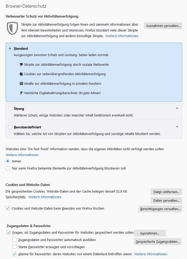 Offensichtlich muss ich also anders vorgehen - aber wie? Möglicherweise stören ja Standard-Einstellungen in den FF-Einstellungen selbt!?