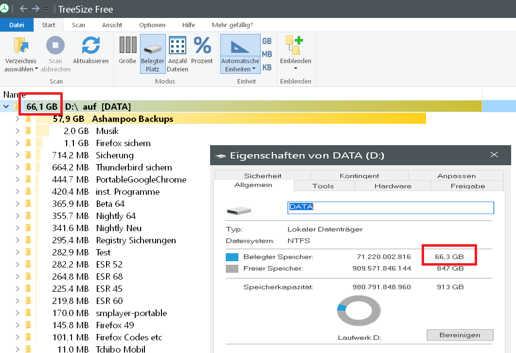 Auf diesem Laufwerk gibt es nur einen Ordner und der hat "Rechtsklick - eigenschaften" diese Größe