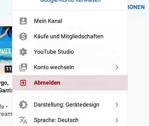 auf Youtube Abmelden farblich ?