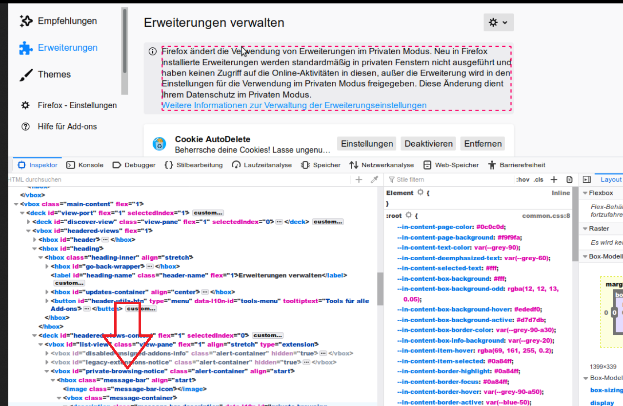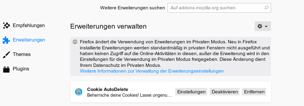 Firefox ändert die Verwendung von Erweiterungen im Privaten Modus...