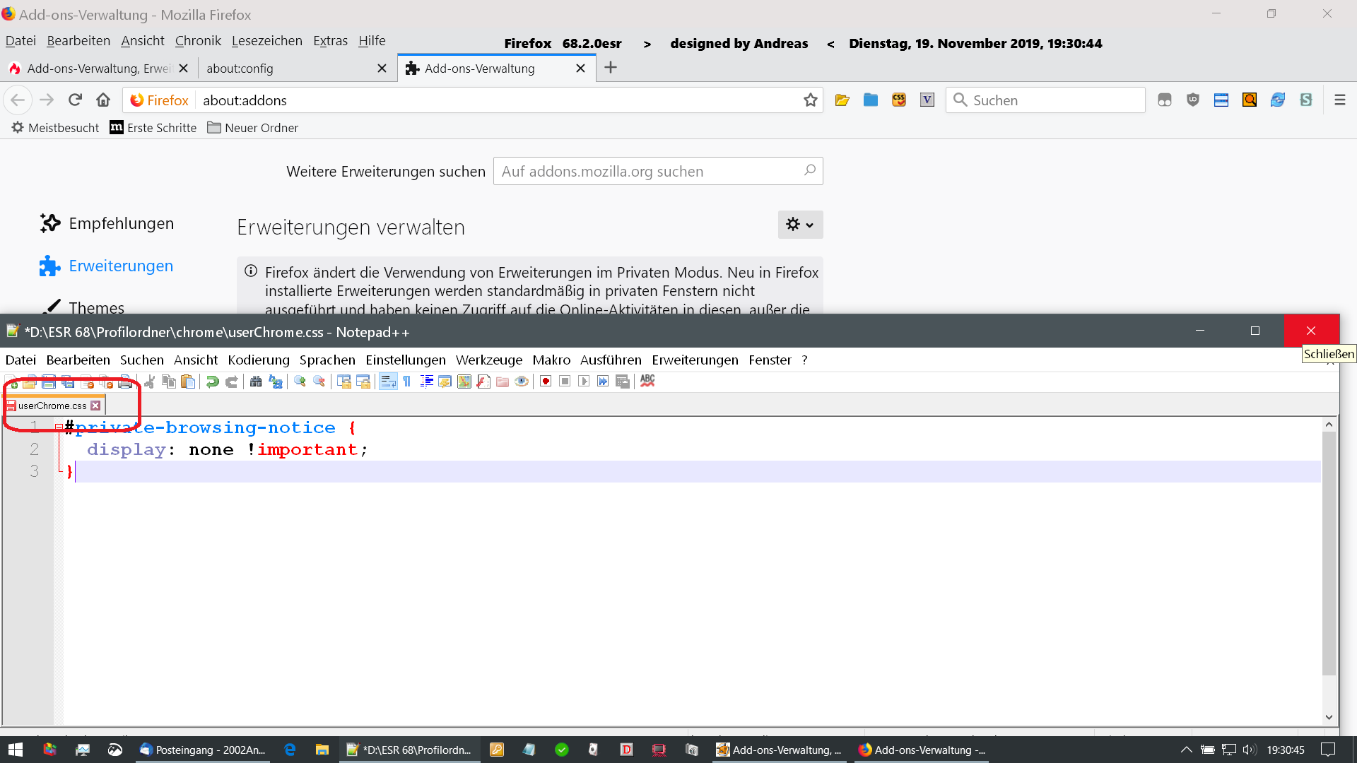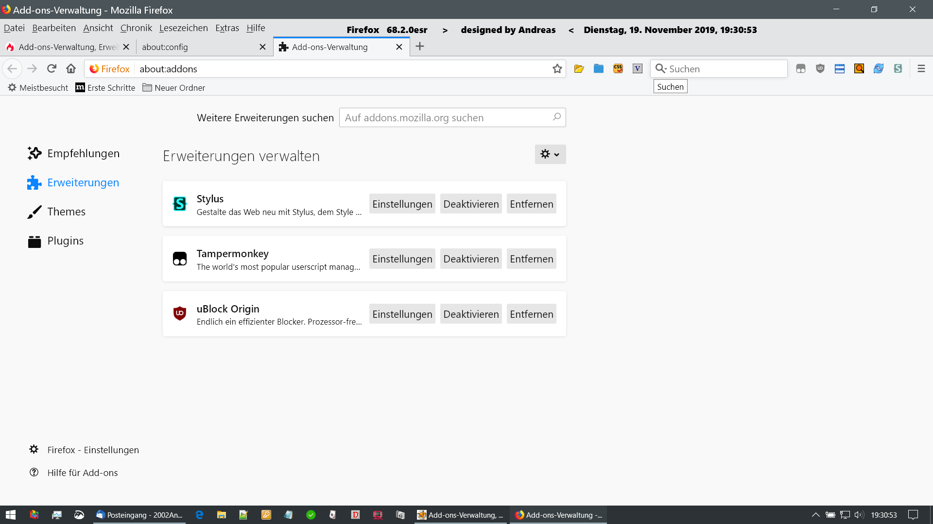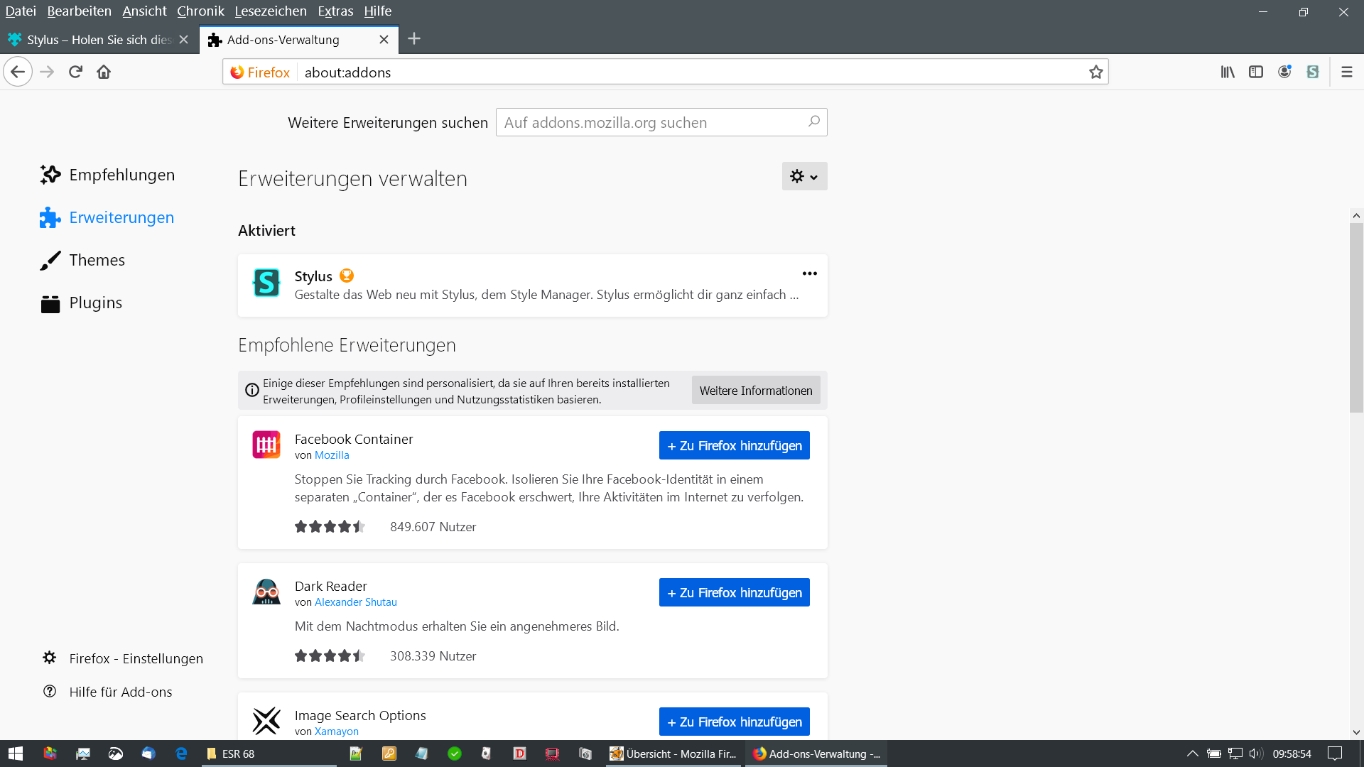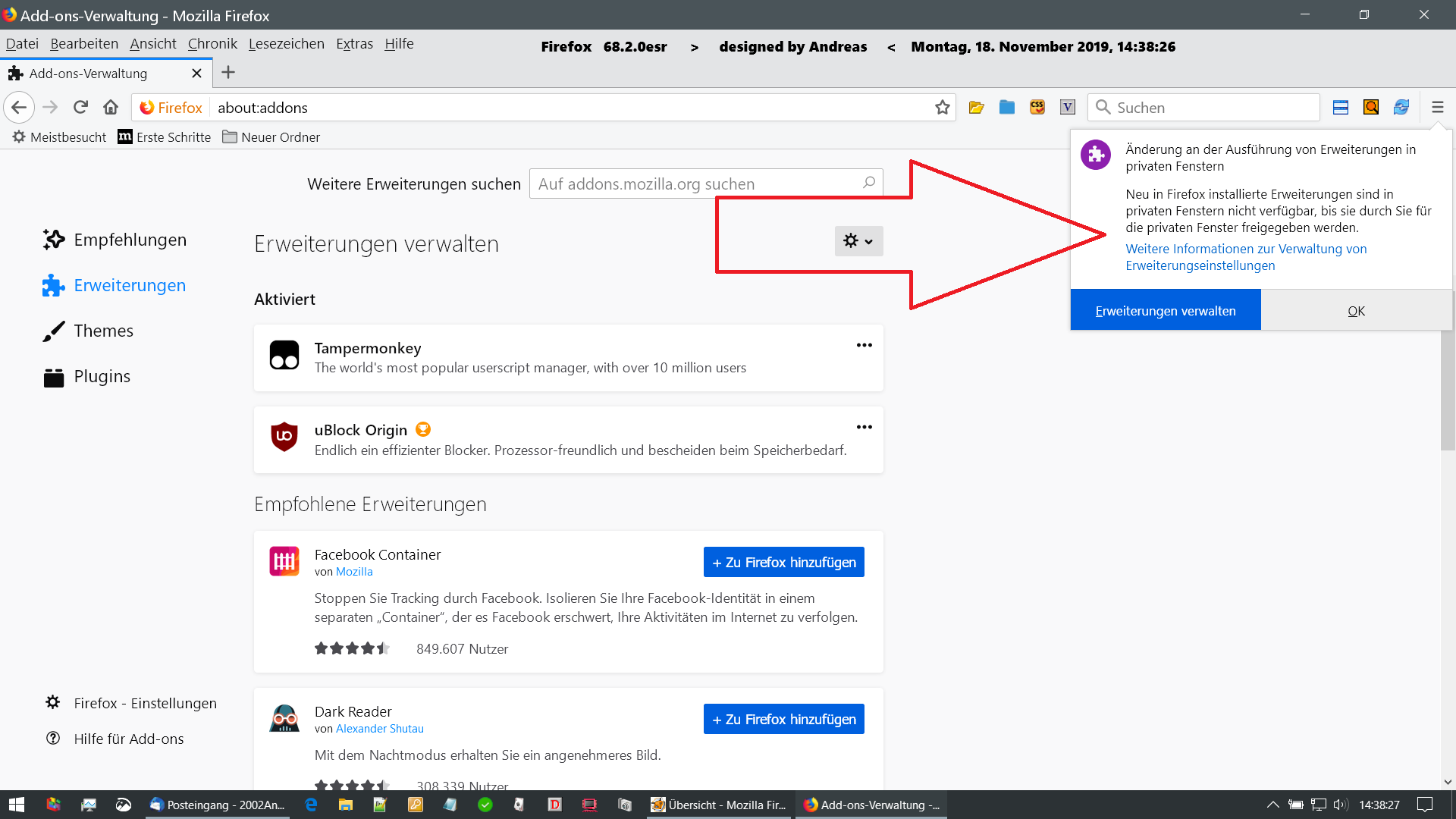 in meinem 68.2.0esr64 prangt seit längerem oben unter Erweiterungen verwalten eine gut gemeinte Erklärung