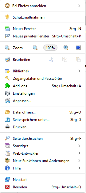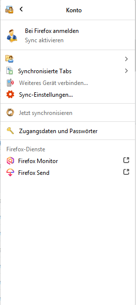aber ein Untermenü fehlt noch, klick ganz oben bei Bei Firefox anmelden.
