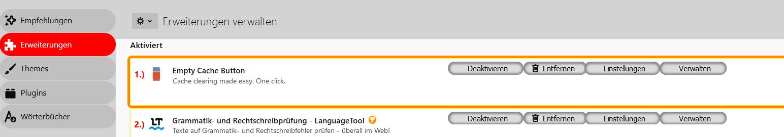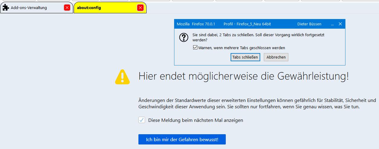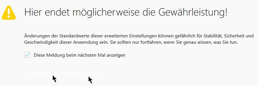 nach den ganzen Anpassungen vom Addons-Paneel wollte ich eine Einstellung in about:config vornehmen.