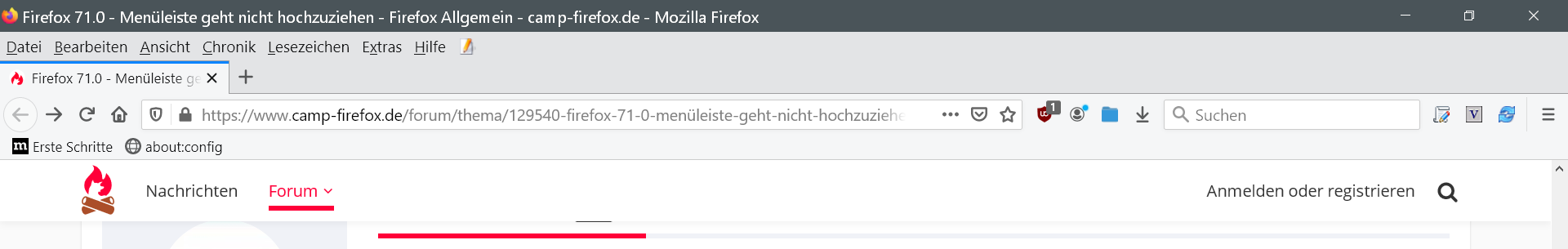 Mir ist eben die Menüleiste zwischen Adressleiste und Tabs gerutscht. Naja vielleicht sollte ich die CSS wirklich mal löschen. Das hatte ich mal, um vor Jahren mal eine Sache nach dem Update anzupassen.