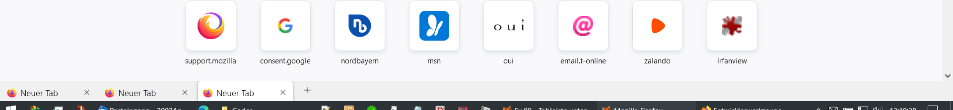 Der Abstand unter der Tableiste kommt nur, wenn ich alle Tabs einmal geschlossen habe, bis auf den letzten und dann einen neuen Tab rechts daneben aufmache. Beim Start von Firefox ist noch alles okay, aber so bald ich das mache, dann kommt der Abstand da unten hinzu.