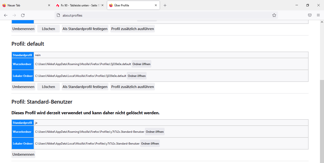 (Dazu wieder about:profiles aufrufen, dann den Wurzelordner des anderen Profiles öffnen.)