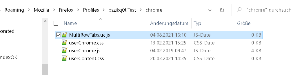 die Datei "MultiRowTabs.uc.js" erstellt und abgelegt:
