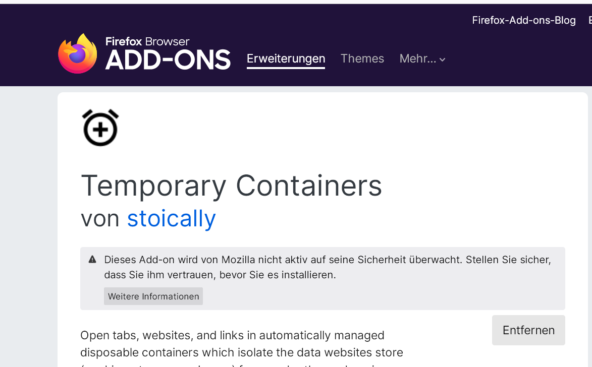 • nicht bei "Temporary Containers" Icon zu funktionieren.