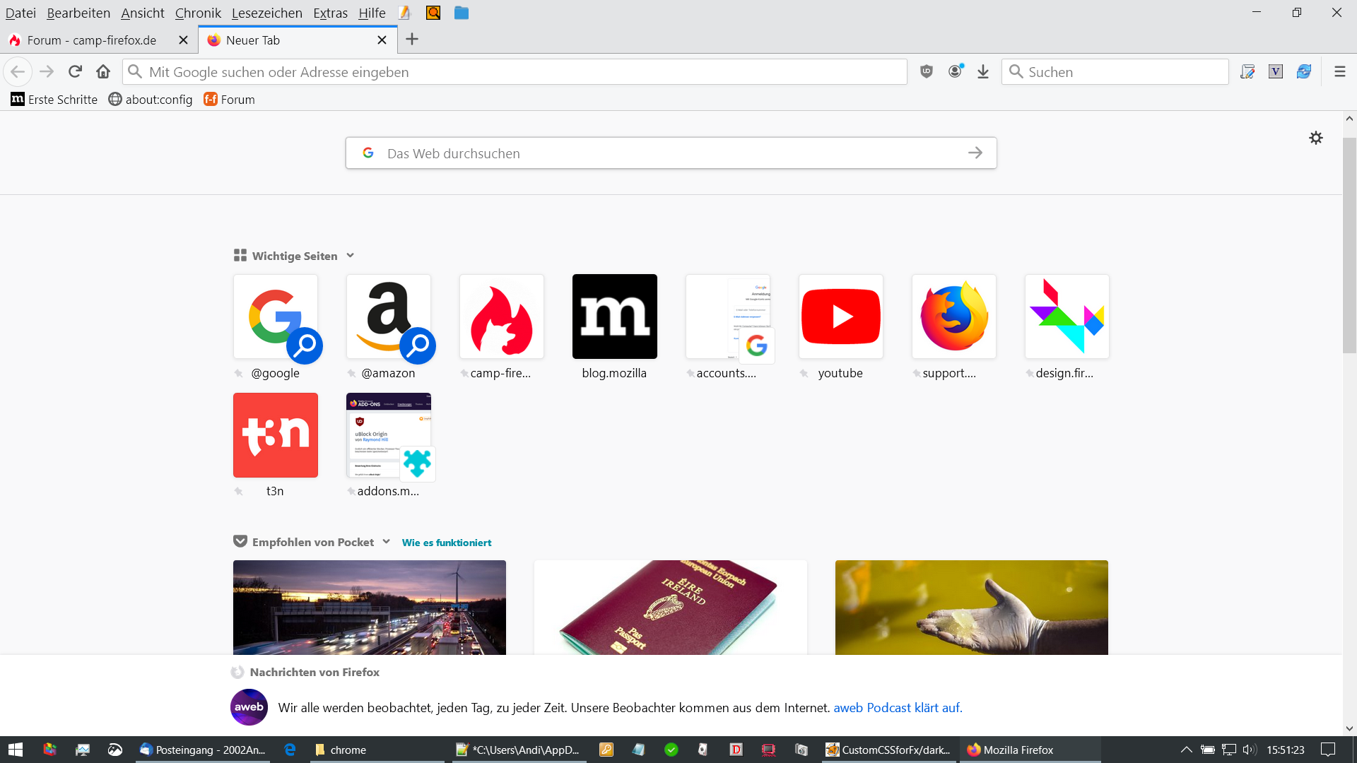 Ich möchte die Chronik gerne in der Übersicht (Seitenleiste) behalten aber eben nicht in "Wichtige Seiten"![]()