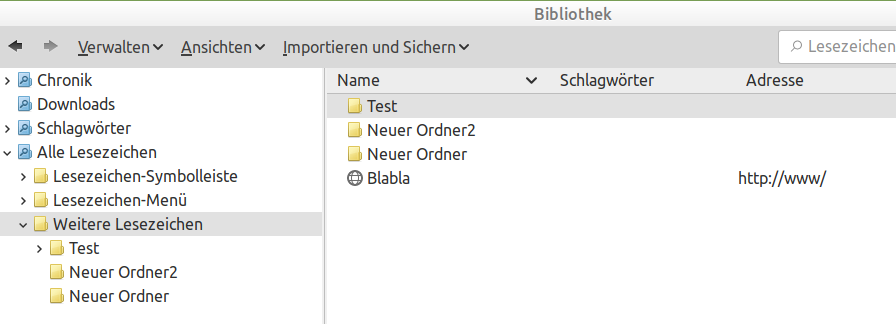 • Überall gelbe Ordner - bis auf CHRONIK, DOWNLOADS, SCHLAGWÖRTER, ALLE LESEZEICHEN