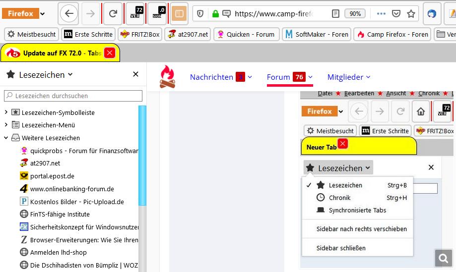Rechts auf dem Bild mein "Eingangspost" - links nun meine Tableiste mit reparierten. Tabs, auch die Lesezeichen sind wieder da. ![]()