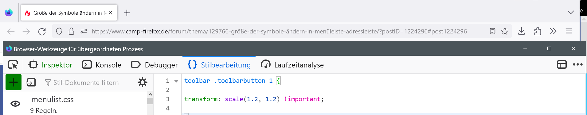 Größe der Symbole ändern in Menüleiste/Adressleiste ?