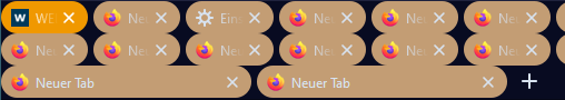 • Nur der aktuelle Tab hat ein X und der inaktive nicht mehr, genau wie alle andere Tabs die ich danach öffne.