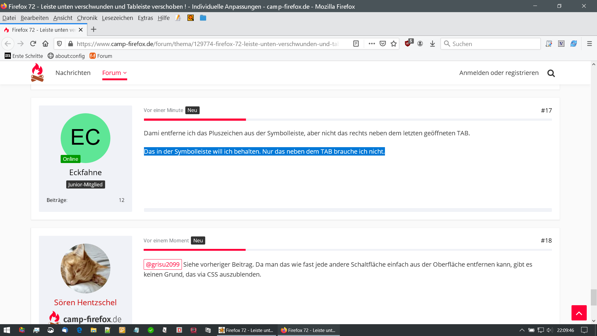 Firefox 72 - Leiste unten verschwunden und Tableiste verschoben !