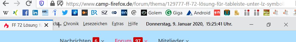 Einige Kleinigkeiten konnte ich hier schon finden. Nur leider keine Lösung wie ich die Tabs wieder unter die Lesezeichen Symbolleiste bekomme (siehe Bild). Folgendes habe ich schon in der about:config erledigt: