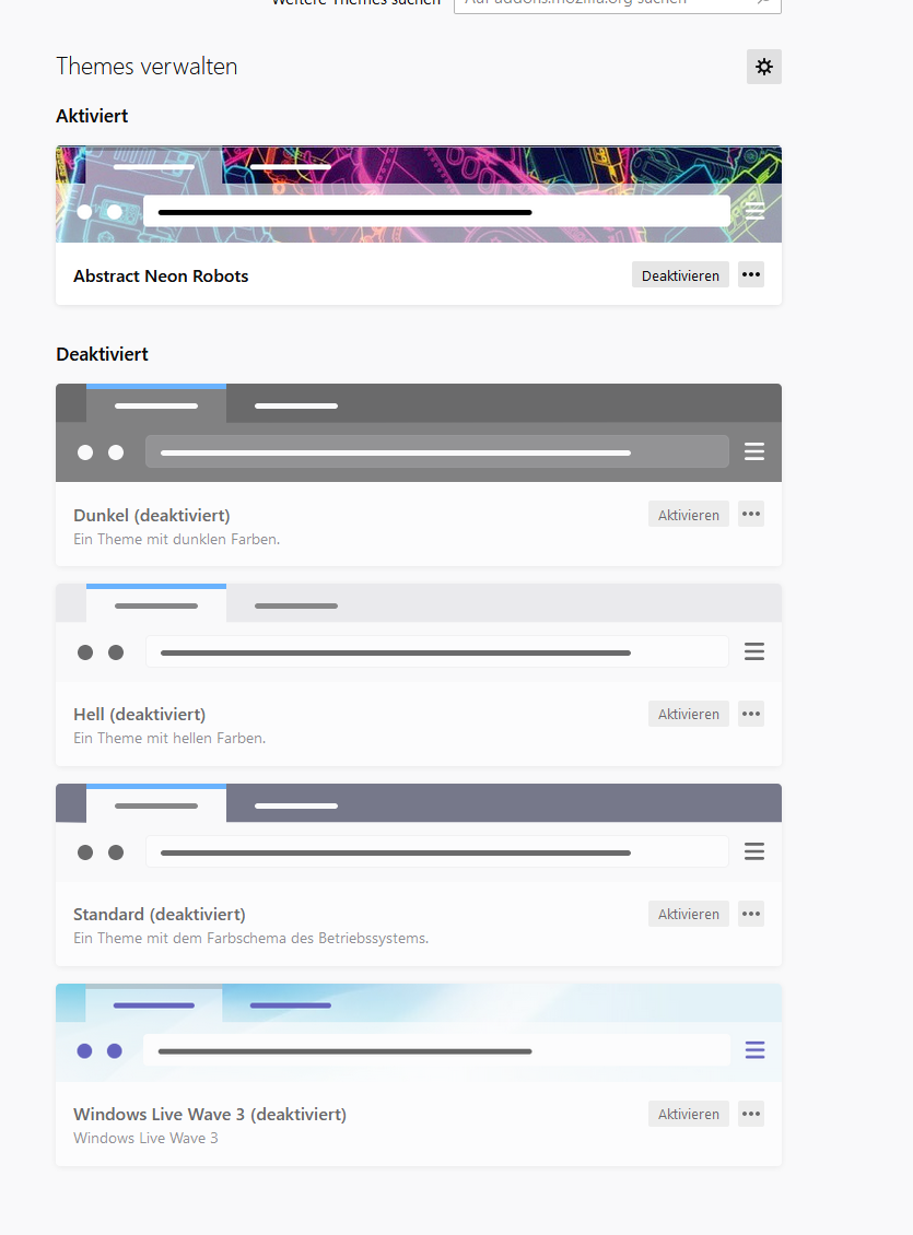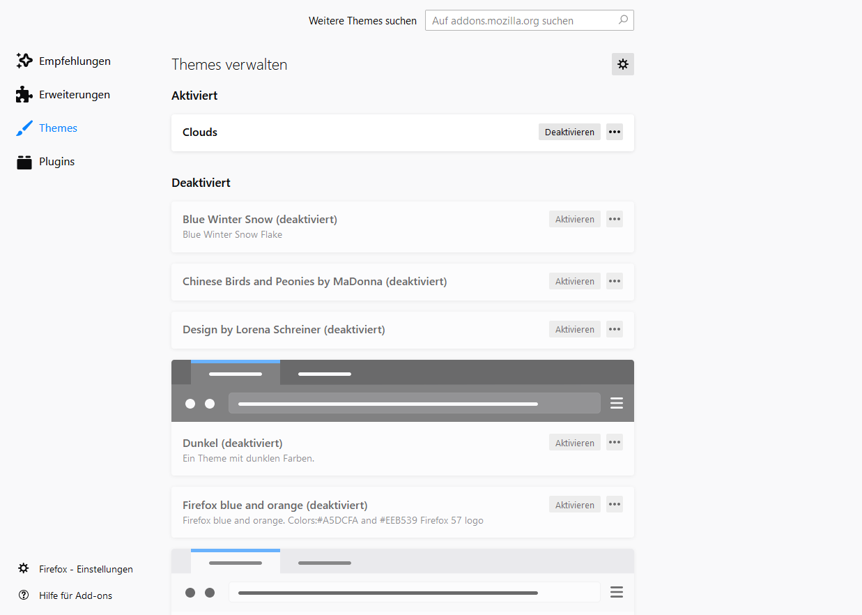 Es werden nicht mehr die „Vorschaubilder“ der Themes angezeigt, nur noch die von FF