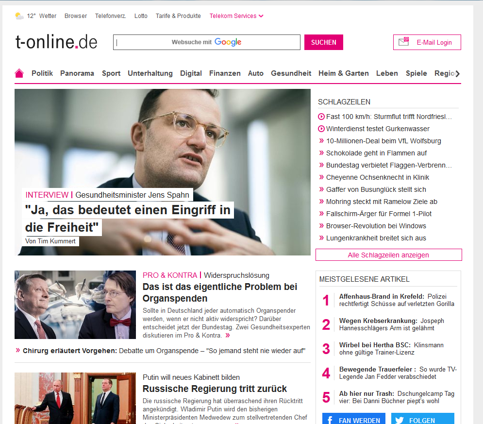 Wähle ich aber das Lesezeichen für t-online.de - dann öffnet sich nur ein Pop-up-Fenster ohne weitere Auswahlmöglichkeit.