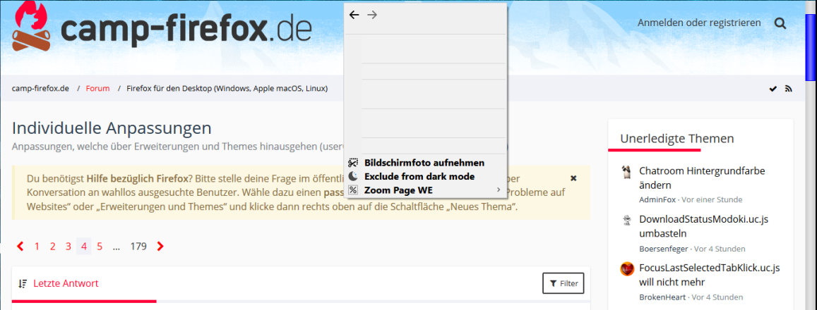 schon seit der FF69 Version ist mein Kontextmenü beschädigt.