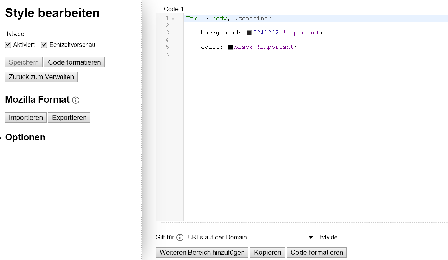 Wenn man eine Sendung an klickt dann öffnet sich das Fenster wie kann ich dort die Farbe ändern?. Und den Rest auf der Seite.