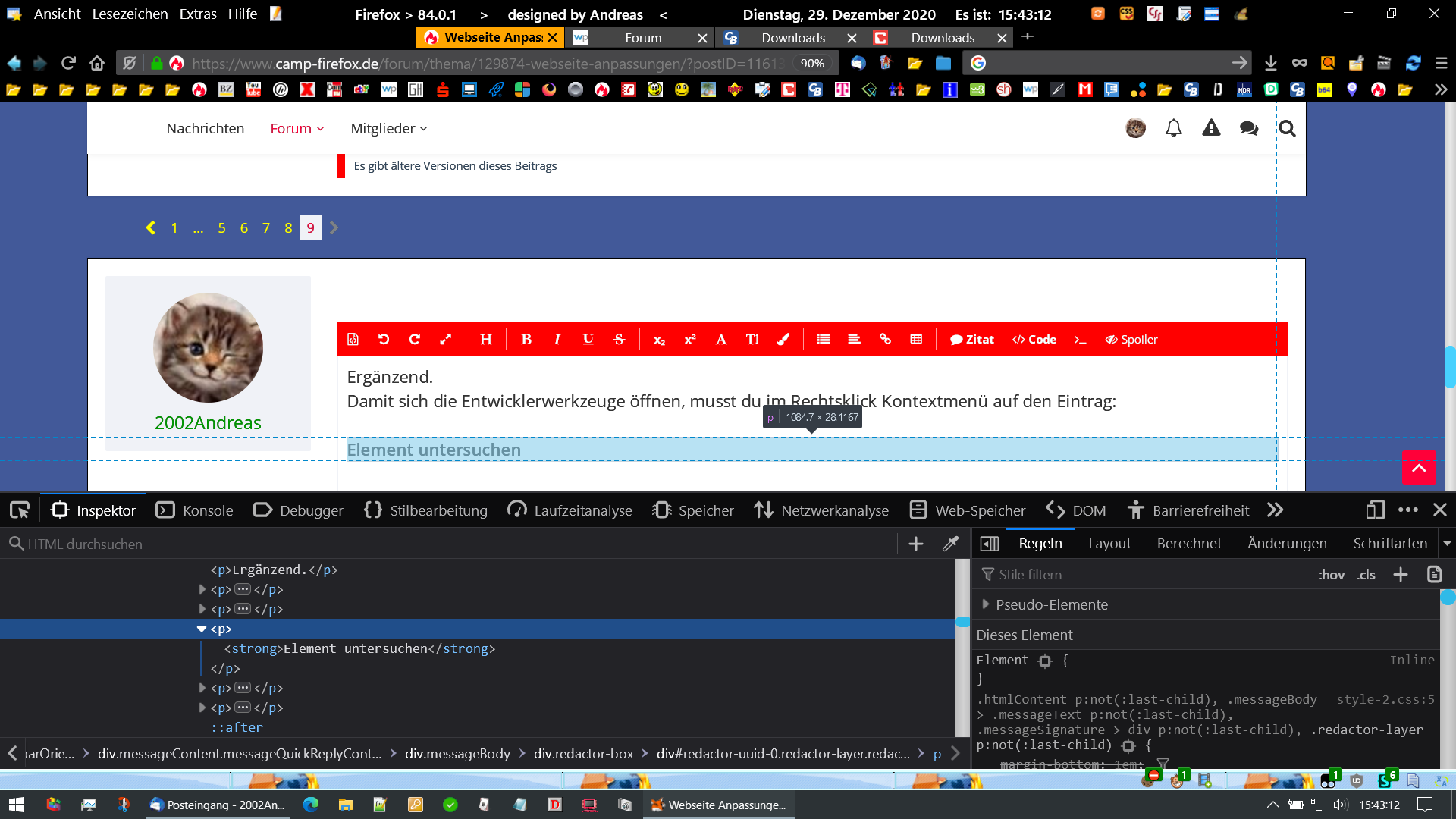 Anleitung zur Nutzung des Inspektors und der Stilbearbeitung aus den Entwicklerwerkzeugen